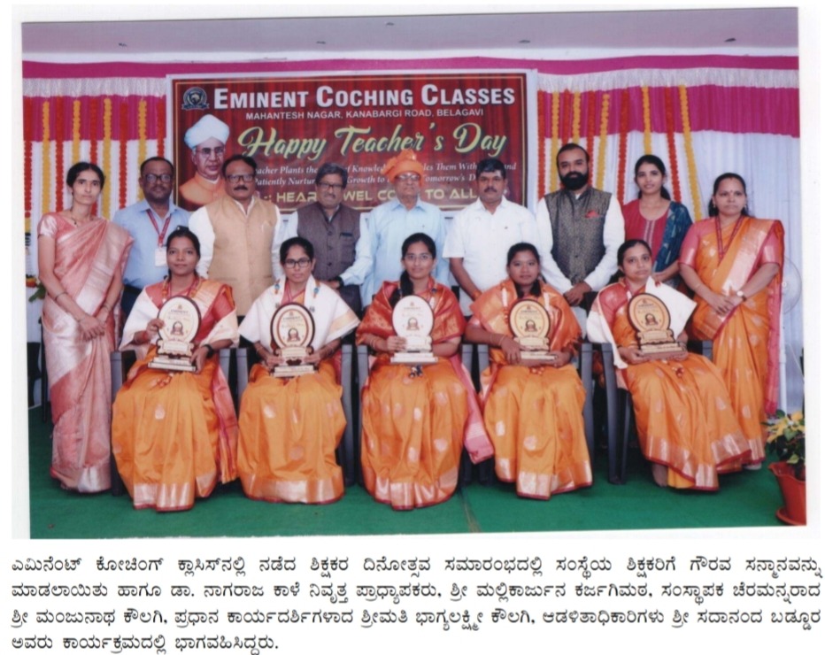 ಎಮಿನೆಂಟ್ ಕೋಚಿಂಗ್ ಕ್ಲಾಸಿಸ್ ಸಂಸ್ಥೆಯಲ್ಲಿ ಶಿಕ್ಷಕರ ದಿನಾಚರಣೆ ಕಲರವ