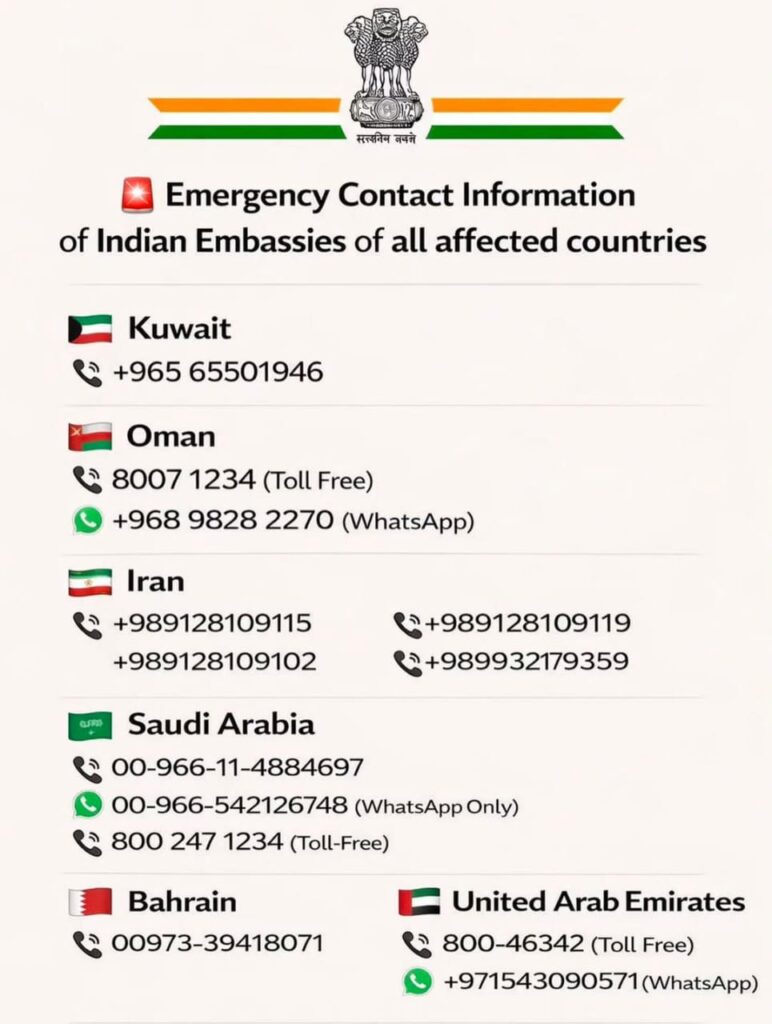 ಸಾರ್ವಜನಿಕರಿಗೆ ಪ್ರಮುಖ ಸೂಚನೆಗಳು : ಮಧ್ಯಪ್ರಾಚ್ಯ ದೇಶಗಳಲ್ಲಿರುವ ಕರ್ನಾಟಕದ ನಿವಾಸಿಗಳು ಹಾಗೂ ಜಿಲ್ಲೆಯವರಿದ್ದಲ್ಲಿ ಅಲ್ಲಿನ ಸ್ಥಳೀಯ ಸರ್ಕಾರಗಳು ನೀಡುವ ಸುರಕ್ಷತಾ ಮಾರ್ಗಸೂಚಿಗಳನ್ನು ಕಡ್ಡಾಯವಾಗಿ ಪಾಲಿಸಬೇಕು.
