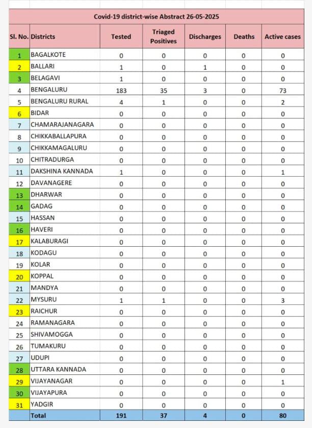 ರಾಜ್ಯದಲ್ಲಿ ನಿಲ್ಲದ ಕೊರೊನಾ ಆರ್ಭಟ ; ಜಿಲ್ಲಾವಾರು ಮಾಹಿತಿ ಇಲ್ಲಿದೆ
