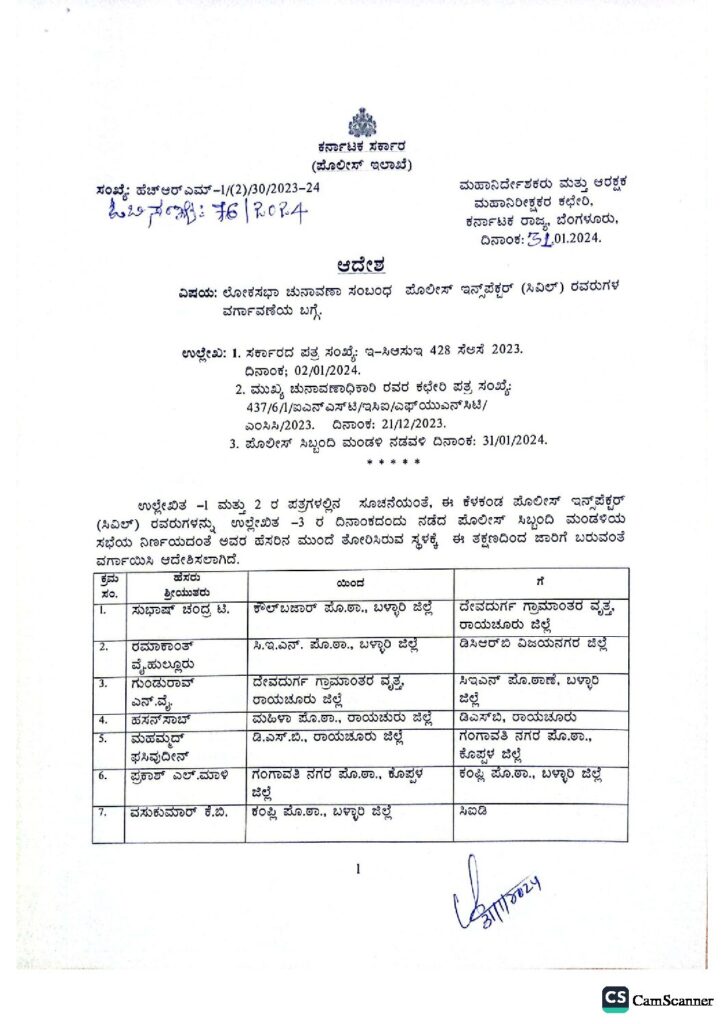 248 ಸಿಪಿಐ ಹಾಗೂ 176 ಪಿಎಸ್ಐ ಗಳ ಸಾಮೂಹಿಕ ವರ್ಗಾವಣೆ