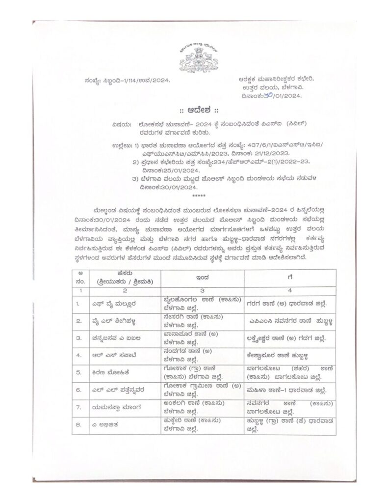 ವರ್ಗಾವಣೆಗೊಂಡ ಪಿಎಸ್ಐ ಗಳ ಪಟ್ಟಿ