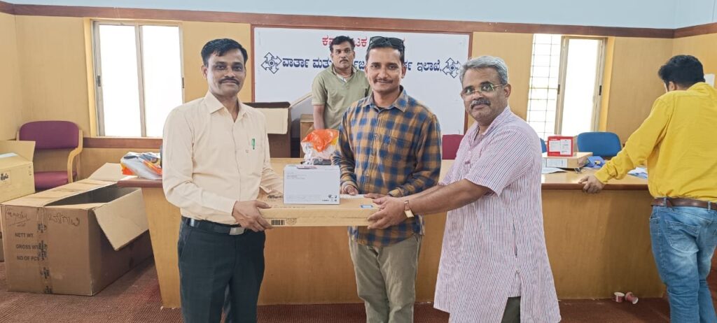ವಾರ್ತಾ ಮತ್ತು ಸಾರ್ವಜನಿಕ ಸಂಪರ್ಕ ಇಲಾಖೆಯ ಉಪ ನಿರ್ದೇಶಕರಾದ ಗುರುನಾಥ ಕಡಬೂರ ಅವರು ನಗರದ ವಾರ್ತಾ ಭವನದಲ್ಲಿ ಗುರುವಾರ (ಜೂ.೧೫) ಮಾಧ್ಯಮ ಕಿಟ್ ಗಳನ್ನು ವಿತರಿಸಿದರು.