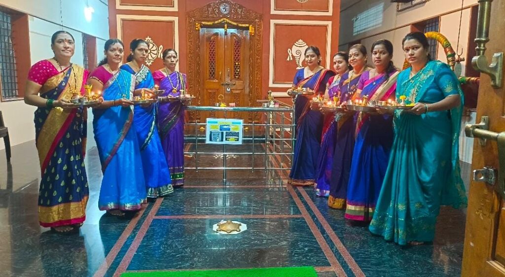 ಬೆಳಗಾವಿ ಸಹ್ಯಾದ್ರಿ ನಗರದ ಮಹಾಲಕ್ಷ್ಮಿ ದೇವಸ್ಥಾನದಲ್ಲಿ ನವರಾತ್ರಿ ಹಬ್ಬದ ನಿಮಿತ್ತ ವಿಶೇಷ ಉಡುಗೆಯಲ್ಲಿ ಲಕ್ಷ್ಮೀ ಜಂಗಣ್ಣವರ ಹಾಗೂ ಸ್ನೇಹಿತೆಯರು.