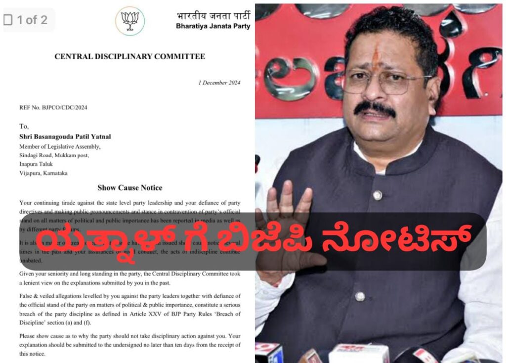 “ಈ ಕುರಿತು ಎಕ್ಸ್ ನಲ್ಲಿ ಪ್ರತಿಕ್ರಿಯೆ ನೀಡಿರುವ ಬಸನಗೌಡ ಪಾಟೀಲ್ ಯತ್ನಾಳ್. ಬಿಜೆಪಿ ಶಿಸ್ತು ಸಮಿತಿ ಅಧ್ಯಕ್ಷರು ನೀಡಿರುವ ನೋಟಿಸ್ಗೆ ಉತ್ತರ ನೀಡುತ್ತೇನೆ, ಕರ್ನಾಟಕದಲ್ಲಿ ಬಿಜೆಪಿಯ ಪ್ರಸ್ತುತ ಸ್ಥಿತಿಯ ಬಗ್ಗೆ ವಾಸ್ತವಾಂಶವನ್ನು ಪ್ರಸ್ತುತಪಡಿಸುತ್ತೇನೆ. ಹಿಂದುತ್ವದ ಹೋರಾಟ, ಭ್ರಷ್ಟಾಚಾರದ ವಿರೋಧ, ವಕ್ಫ್ ಸಂಬಂಧಿತ ಸಮಸ್ಯೆಗಳು ಮತ್ತು ಹೊಂದಾಣಿಕೆ ಇಲ್ಲದ ರಾಜಕೀಯಕ್ಕೆ ನನ್ನ ಬದ್ಧತೆ ಅಚಲವಾಗಿ ಉಳಿಯುತ್ತದೆ ಎಂದು ಪ್ರತಿಕ್ರಿಯೆ ನೀಡಿದ್ದಾರೆ.”